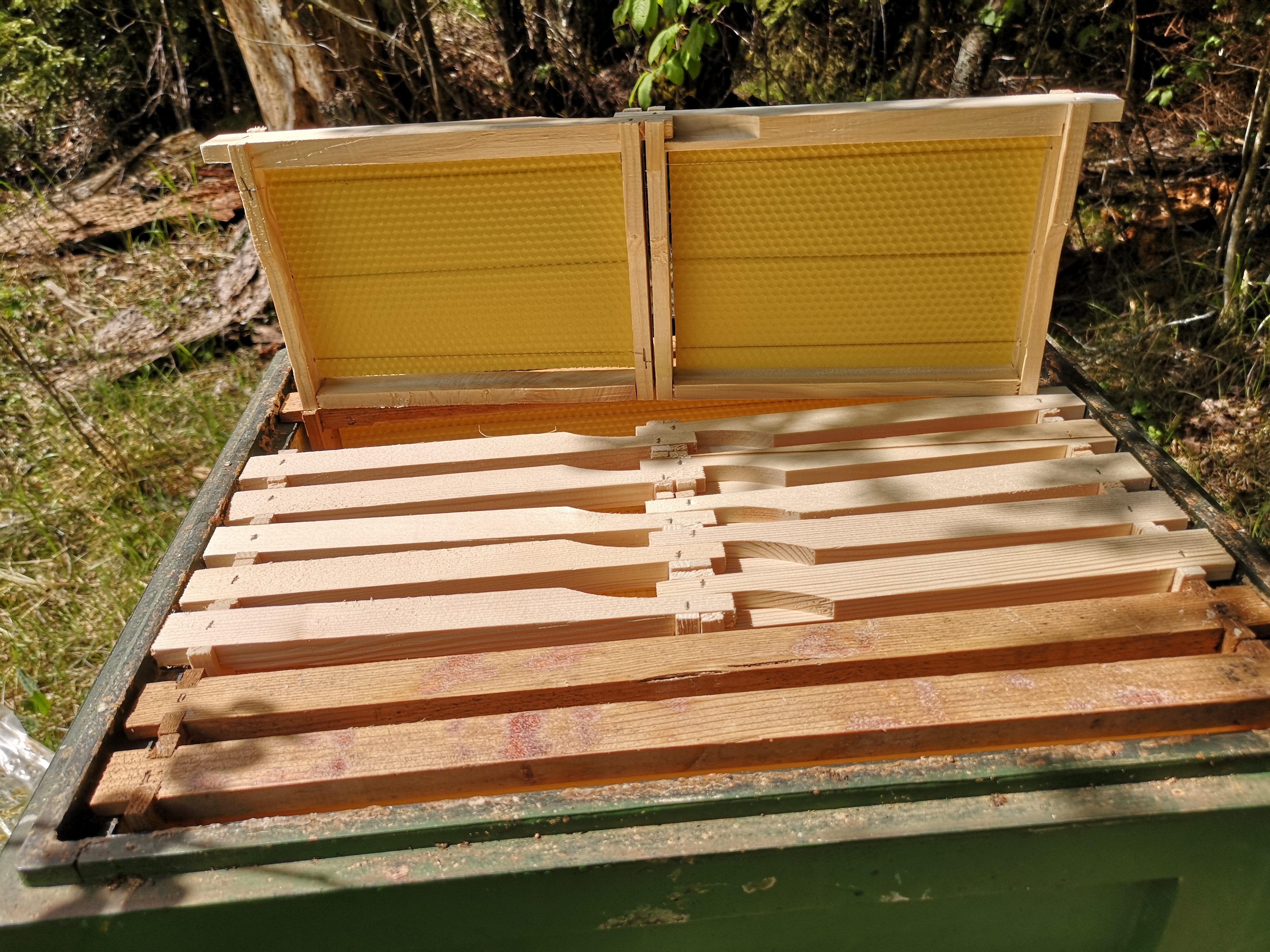 Ļoti vienkārši Quadri-Hive “piestartēt” ir uzliekot to uz saimes P-HIVE stropā kā magazīnu/medustelpu.